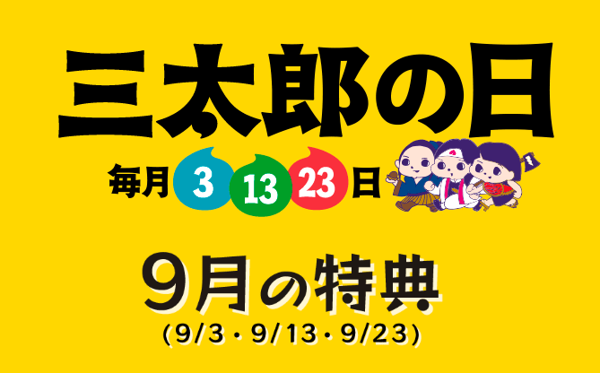 auのCMでおなじみの「三太郎」。auではその「三太郎」にちなんで3のつく日は「三太郎の日」とし、キャンペーンを開催中です。