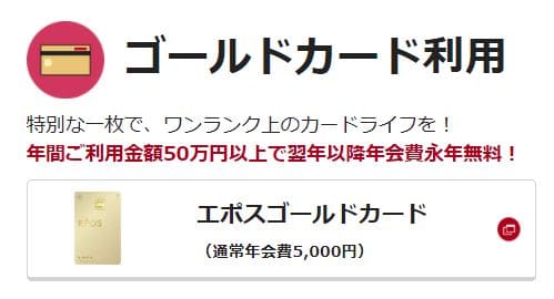 エポスゴールドカードの年会費は5,000円となっていますが、年間50万円以上の利用することで、翌年以降年会費が永久に無料となります。