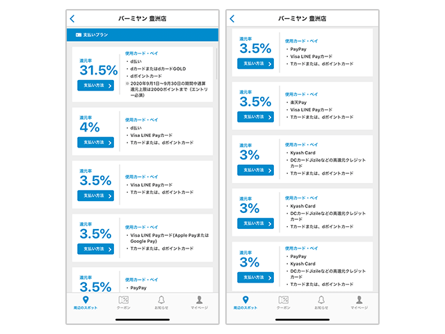 それでは「バーミヤンでお得な支払い方法TOP5」を見ていきましょう!