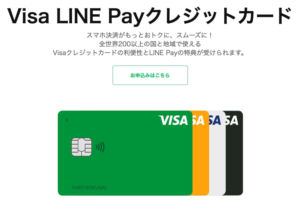 Visa LINE Payクレジットカード公式サイト※※当ページからのお申し込みはLINE Pay株式会社および三井住友カード株式会社が主催する各種キャンペーンの条件に該当しない場合がございます。