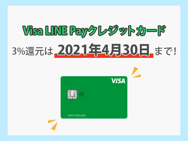 第3位のVisa LINE Payクレジットカードは、2021年4月末まで「カード利用額3%還元キャンペーン」を実施中です。