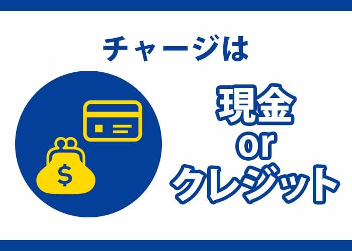店頭でおこなえるのは、現金チャージのみ。オンラインであれば、クレジットチャージが可能です。