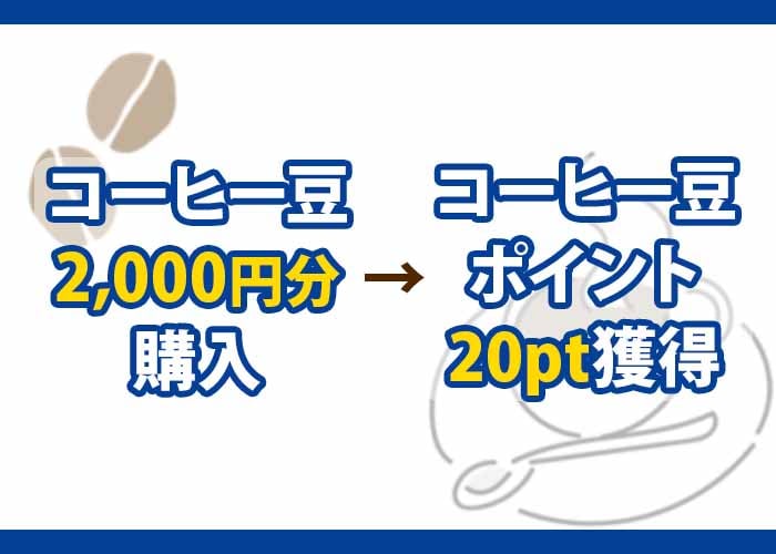 付与されるポイントは、オリジナルコーヒー豆*の購入100円ごとに1ポイントです。