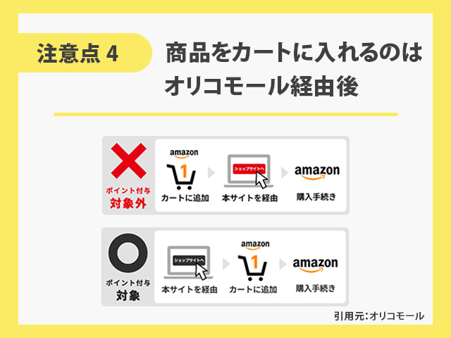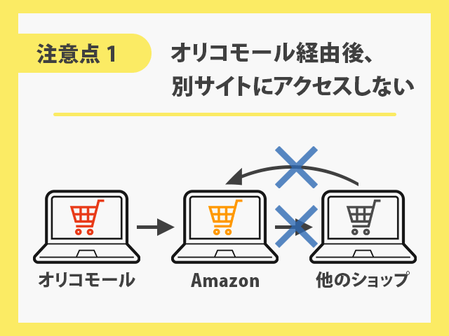 オリコモール経由でAmazonを利用するときの注意点は次の4つです。