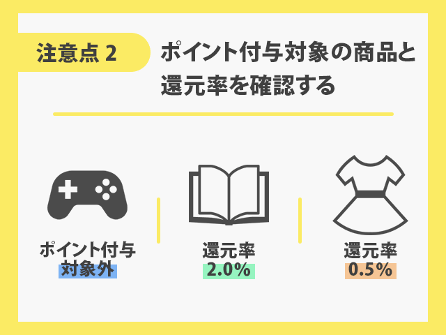 上記画像のとおりポイント還元される商品カテゴリは決まっていて、還元率もそれぞれ異なります。