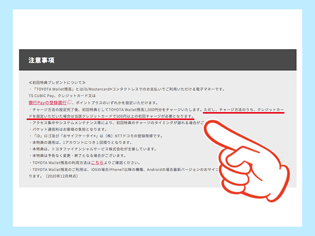 TOYOTA Walletの新規会員登録とチャージ方法の設定だけで1000円分の残高がもらえるので、登録する価値は十分あります。