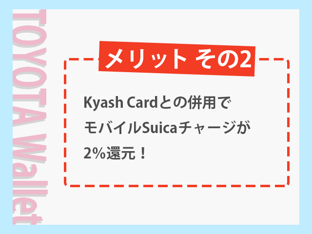 「Kyash Card」とTOYOTA Walletを併用して、モバイルSuicaのチャージで2% 1.2%還元を得る方法が今話題です。